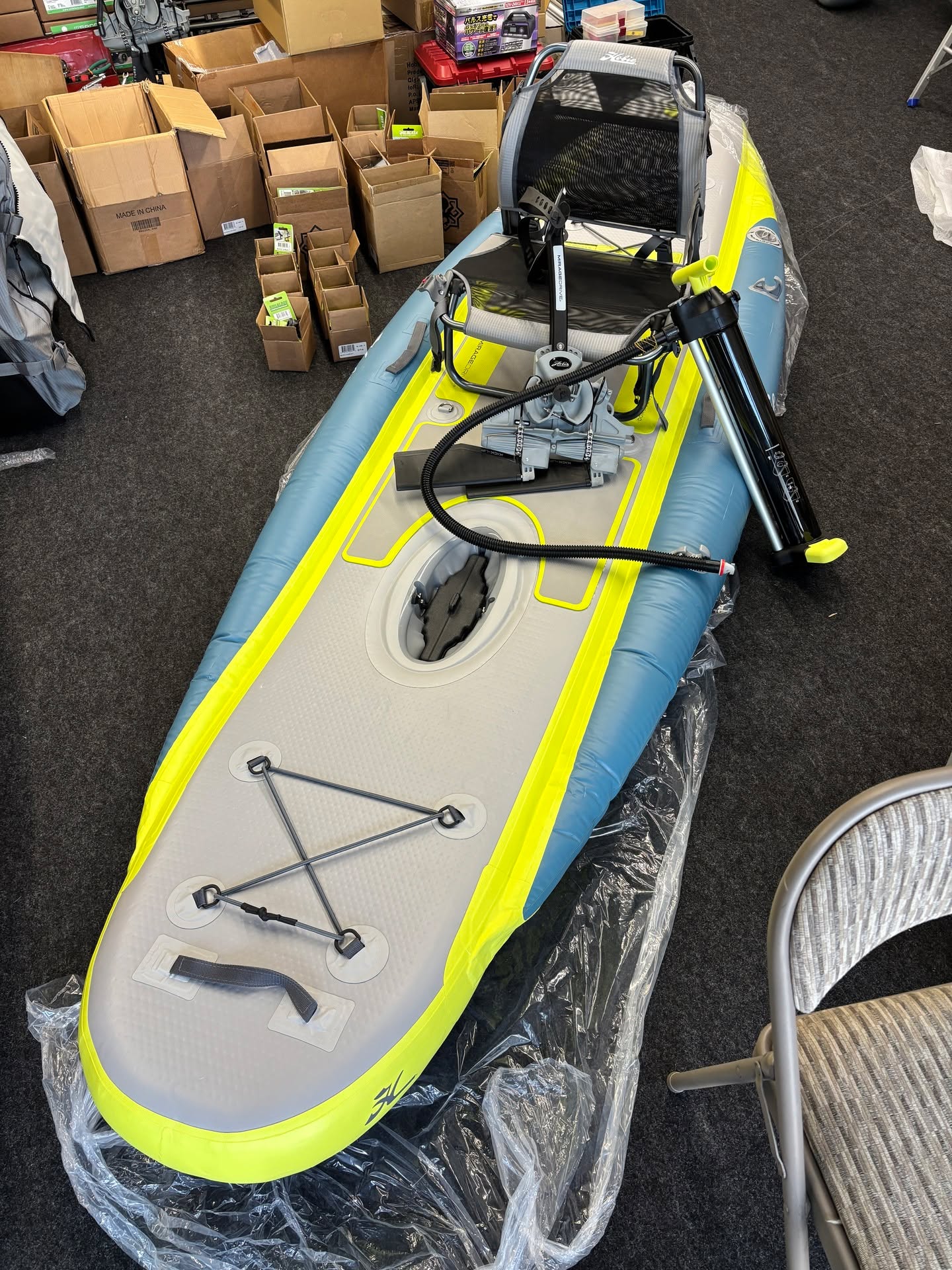 iTrek11 お渡し前に空気を入れて一晩チェックこのカヤックは3気室に別れていますので3回空気を入れる訳ですが、左右のブルーの所は0.2barとかなり弱めの設定ですので、軽く膨らんだら完了です。中央の人が乗る部分は0.7bar、この圧力は結構パンパンな感じです。朝一の気温が低い時に0.7入れると気温の上昇と共に圧力が上がってしまうので、通常はちょっと少なめの0.5bar辺りでの運用がちょうどいいかと思います。カヤックを購入すると小さな電動ポンプも付属しますがバッテリーを繋ぐ準備をする方が面倒なので今回は付属の手動ポンプで膨らましちゃいました。一日の釣行計画を練りながらワクワクしながら膨らますあの時間。結構好きです。昔は「i11s」って名前だったんです、「iTrek11」って名前になって大きな違いはラダーが外せるようになった事ですね。船体がより小さく畳めるようになりラダーのメンテナンス性もアップしました。ラダーワイヤーはどうしても劣化しやすいので、水洗いやメンテナンス、乾燥後に屋内保管が可能になったのは嬉しいですね。末永く使って楽しんで下さい。